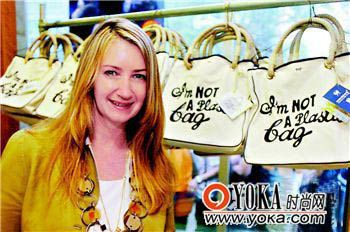 38岁的辛德玛奇,表面上看起来有点像一个普通的家庭妇女,照片上她站在“我不是个塑料袋”前的拘谨样子,就像J.K.罗琳站在一堆《哈利·波特》的小说旁边。