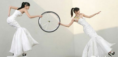 灵感来源于自行车车胎的错综复杂的结构,而婚纱应该是纯美的,由此,我用了纯净的棉絮做表面,并用很多丝质的织带和雪纺条不规则地车缝在上面制造肌理感,里布用了白色的胚布和衬,非常喜欢这些不同材料的重叠带来的全新感觉。这些不同的白色的光泽在剪裁后变得非常特别,但依旧保持着婚纱的形态,无肩带收腰的小拖尾裙,相信能给时尚新娘带来全新的体验,是一种返朴归真的纯粹。