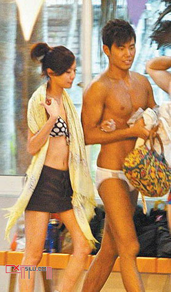 名模余秉谚与女友泳池嬉春