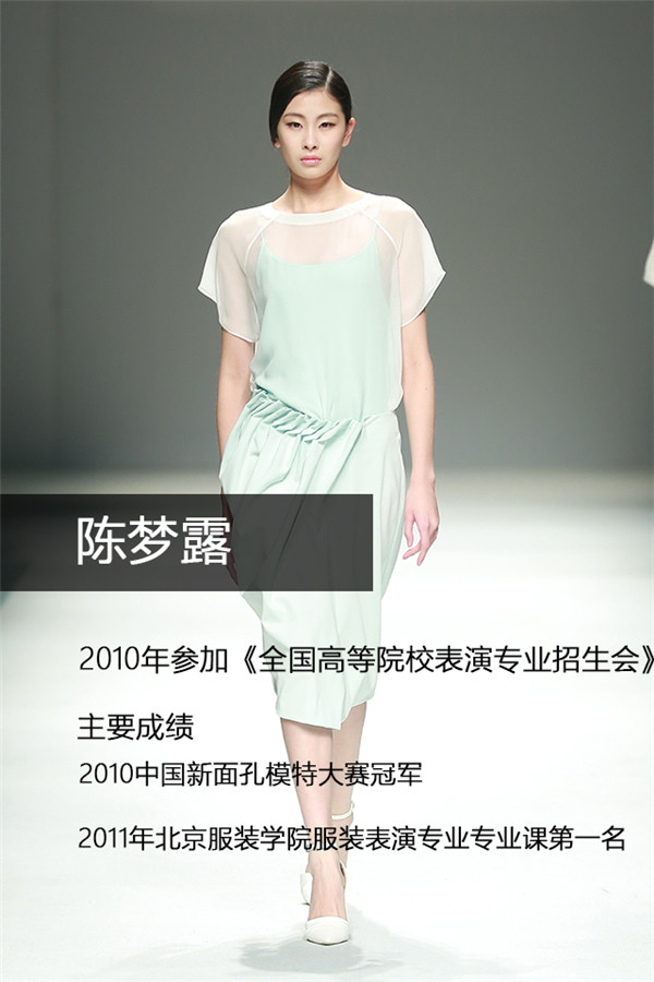 新面孔艺考之星陈梦露,2010中国新面孔模特大赛冠军,2010年参加《全国高等院校表演专业招生会》,2011年以第一名的成绩考入北京服装学院服表专业。外表甜美气质纯净的陈梦露整体的清新脱俗令人过目难忘。