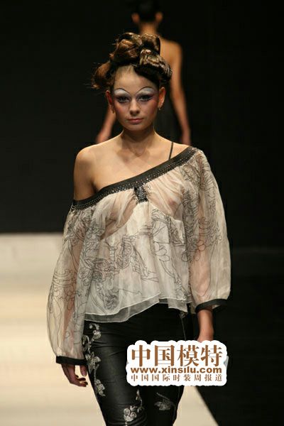 梁子的理念是平和、健康、美丽,她设计的时装,模特穿在身上很随意、很自然、很轻松。在浓郁的中国情调氛围之下将中国风情演绎的完美无瑕。其间,模特着透视装走秀,凸点隐现,更是将诱惑发挥到了极致。