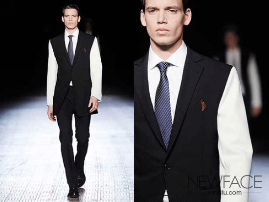尽管这一系列的服装,延续了Raf Simons的瘦身剪裁,并被开发得更为棱角分明。但Raf Simons耍了个小花招。他派遣了一群穿着鲜红色衬衫,戴黑色细条领带的少年整齐划一地鱼贯而出,仿佛是一熘时髦的童子军在拉练。那一瞬间,简直就是对整个时装工业的反动。谁想要一套“你有我有大家有”的时装?更何况这一身行头,分明便是Kraftwerk乐队在名作《The Man-Machine》封套上的经典造型,此时的背景音乐也恰是Kraftwerk那机械、枯燥、无休止重复的电子音乐。