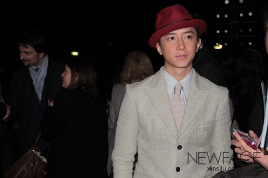 韩庚此番是受到Salvatore Ferragamo品牌的邀请去看该品牌的2012秋冬男装秀,浅灰色的西服外套搭配白色裤子以及编织风皮鞋略显素雅,在时装周这样“群魔乱舞”的场合并不出挑,枣红色的呢帽不仅让整体造型显得精致而且和Salvatore Ferragamo品牌优雅的形象更加匹配,按照媒体收到的公关稿的语气就是“韩庚作为中国唯一受邀艺人出席了salvatore ferragamo 2012/13秋冬男装秀”。