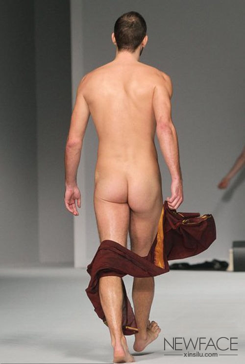 Frankie Morello2012秋冬秀开场的时候并无任何夸张的成分,模特轮番出场展示品牌的最新设计,但随着走秀的进行模特展示的服装越来越轻薄,最后出场的模特画着类似印度苦行僧的妆容现场音乐也极具印度风格,当最后一名一名男模转身的时候自然的扯掉围在下身的布,正常秀真正进入了高潮,模特们轮番谢幕而这位“光猪勇士”也坦然的全裸谢幕。