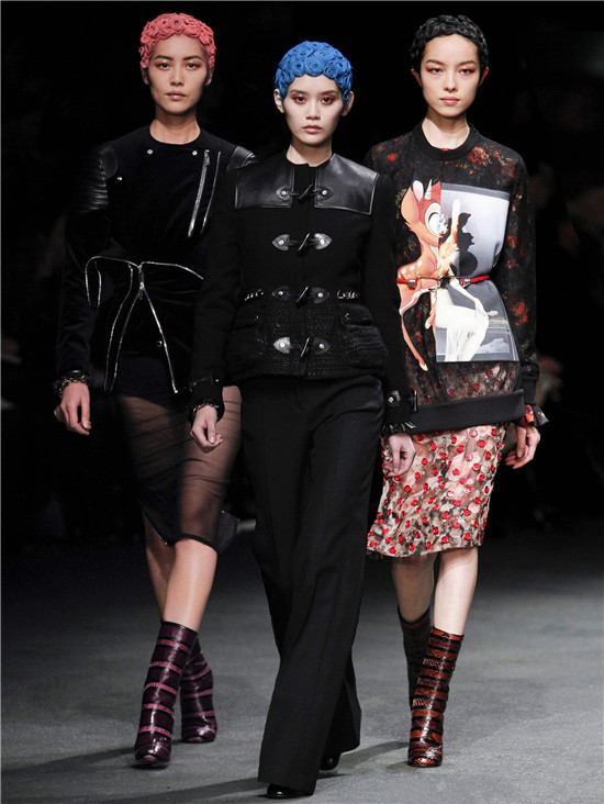 在今年的Givenchy紀梵希秋冬秀场上中国超模只有三位登上本次T台上,刘雯 (左),孙菲菲(右),还有2010秋冬T台以及当季广告面孔之后,再度回归Givenchy高级成衣秀场的Ming奚梦瑶(中)(2010秋冬和2011春夏高级定制系列除外)。