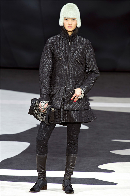 Chanel 2013秋冬T台上的中国模特:孙菲菲、奚梦瑶、秦舒培、雎晓雯、张丽娜其中张丽娜是首次出现在Chanel巴黎时装周的T台上。