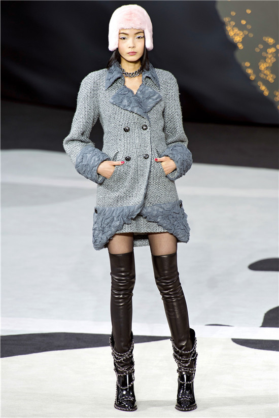 Chanel 2013秋冬T台上的中国模特:孙菲菲、奚梦瑶、秦舒培、雎晓雯、张丽娜其中张丽娜是首次出现在Chanel巴黎时装周的T台上。