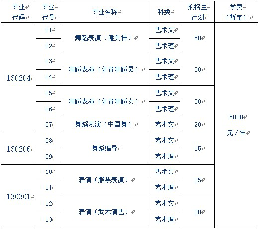 2014年山东体育学院艺术类舞蹈表演专业、舞蹈编导专业和表演专业继续在山东省招生。