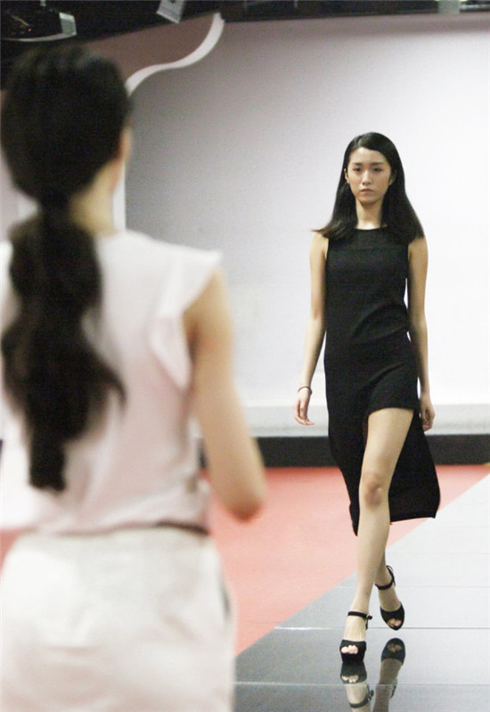 毕业于北京新面孔模特学校第8期高级实践班的名模赵晨池昨日回到母校,为新面孔服装表演专业的学生们带来了一堂不一样的T台表演课。