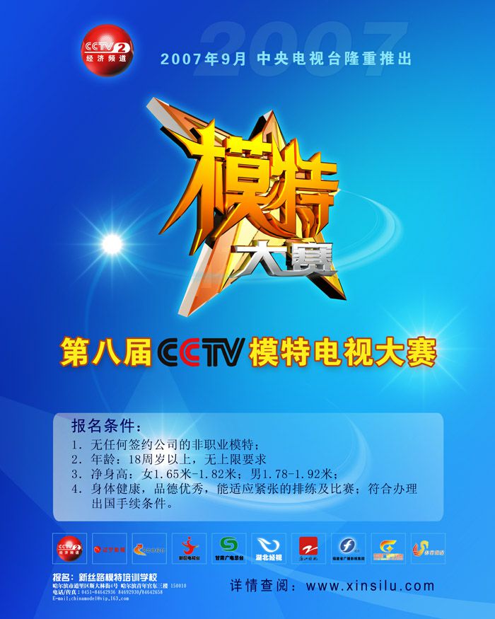 2.年龄:职模大赛要求女24周岁以下、男26周岁以下;CCTV大赛要求18周岁以上,无上限要求