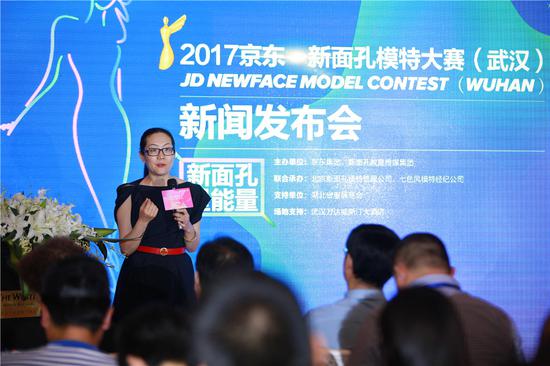 5月12日下午,《2017京东•新面孔模特大赛》武汉赛区启动仪式在武汉万达威斯汀酒店举行。京东平台运营项目经理左烨、新面孔教育传媒集团总裁张延、七色风模特经纪公司董事长张平出席会议,并全面的介绍了本次大赛。出席本次发布会的还有湖北省经信委、湖北省服装商会等相关政府及商协会的领导;江汉大学、武汉体育学院、武汉传媒学院等高校的服装表演、艺术专业负责人,时尚界人士以及十多家国内外新闻媒体参加了本次大赛武汉赛区新闻发布会,共同见证2017年最强劲的时尚选秀风暴在江城武汉拉开序幕。