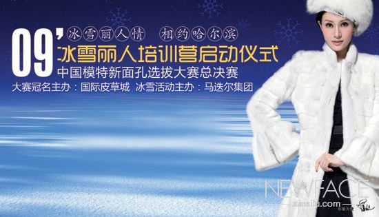 由文化部批准,中国艺术摄影学会、中国人像摄影学会和哈尔滨新丝路模特学校共同举办的《2009中国模特新面孔选拔大赛》在黑龙江、山西、陕西、重庆、四川、吉林、新疆、广东等12个省市设立的分赛区比赛已基本结束。总决赛将于2009年12月26日—31日哈尔滨国际国际冰雪节期间,在银装素裹、玉洁冰清的北国冰城哈尔滨隆重举办。